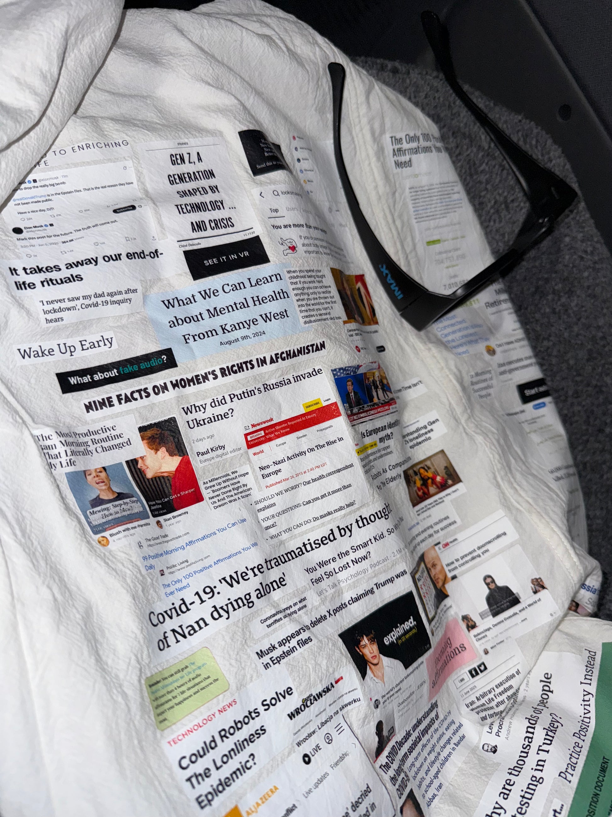 Rzeźba z bawełny, która powstała jako część wystawy "SAD GENERATION WITH HAPPY PICTURES", zorganizowanej przez galerię sztuki ELEVEN TEN STUDIO z Bazylei (Szwajcaria) z okazji Warsaw Gallery Weekend 2025